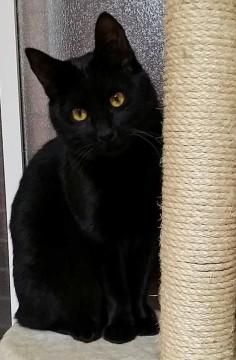 性格はおとなしく内弁慶、人前ではシャイですが他の保護猫達と楽しく遊んだり、おもちゃで遊んだりして過ごしています。