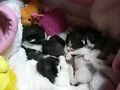 目も開いておらずへその緒がついた状態で袋に入れられゴミ置き場に遺棄された乳飲み子5兄妹です。
