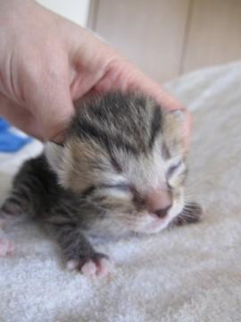かわいいきじ虎るみちゃんです、短いしっぽがキュートです。まだ小さいので性格等ははっきりわかりませんが、ミルクから育てるので大変人なつこくなります。