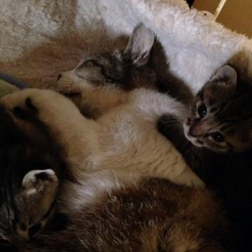 人にフードをもらっている猫さんの中で生まれました。