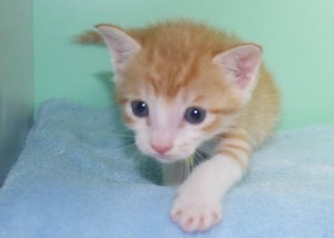 推定4月23日産まれ そろそろ離乳食開始の子です。掲載時健康状態良好 哺乳瓶でミルクを飲み順調に成長しております。ノミ・耳ダニ なし、乳のみ猫にとって致死量となる採血はできません為ウイルス検査(猫エイズ・白血病)はしておりません。母猫との接触のみの乳のみ猫の感染は極めて稀です。