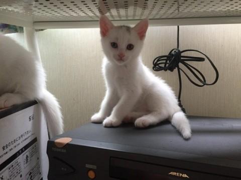 頭に黒い斑があります。 オッドアイだと思われます。