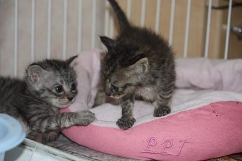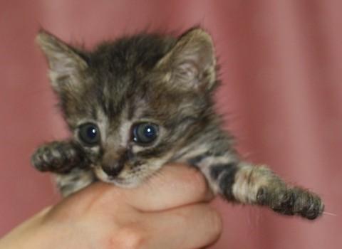 3兄妹の中で一番体は小さいけれど、とても元気です。食欲旺盛でよく鳴きますね。