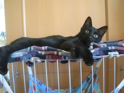 活発なヤンチャ坊主です(^^)。黒猫特有のおとぼけな性格で、なんとも憎めない可愛い猫です。