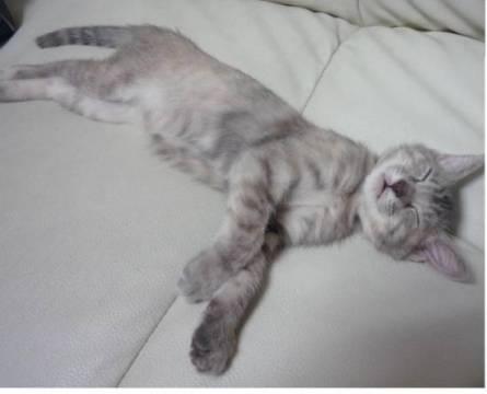 キジ茶(背中にきいろが混じっています) まっすぐな長いしっぽです 顔がはっきりしてきて美人になってきました おとなしく、よく寝ています 遊んであげるととても喜ぶかわいい子です