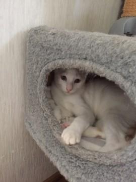 甘えん坊で、家の猫のあとを付いて回ってます。
