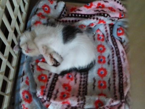 二宮町内の民家の庭先で、ノラ猫ママが産んだ子猫です。当初は兄弟がいましたが、湘南ねこの会が引き取るまでの間に里親がみつかったりして、最終的にはこの福ちゃんだけが引き取られました。