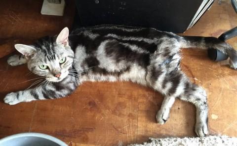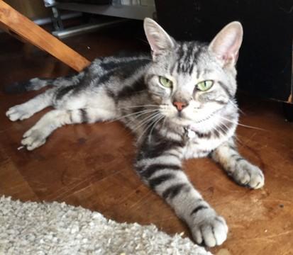 アメショ柄さん。グリーンアイ。長いしっぽ。