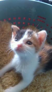 三毛柄がとっても綺麗なネコちゃんで、大人になったら美猫間違いなしです。