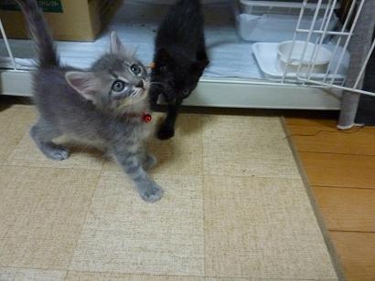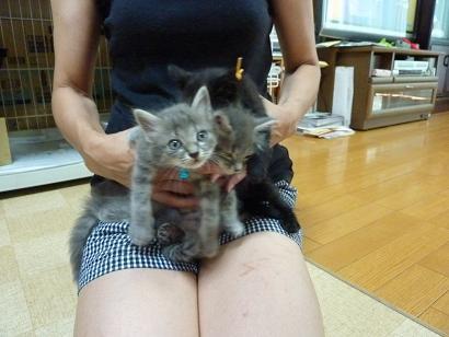 グレーの綺麗な毛並みです。1.5ヶ月くらいの男の子と女の子の2匹です。