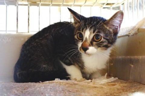 まだ、ケージの中で怖がっていますが、子猫なので新しい環境や人間に