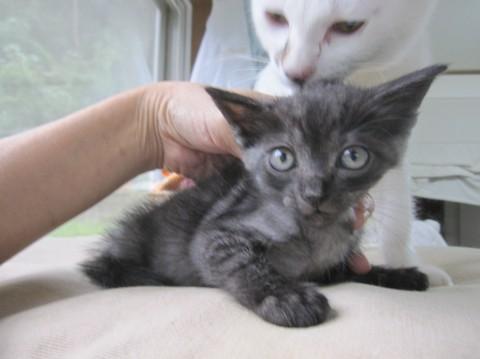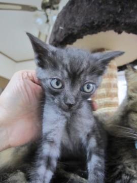 かわいいスモーキーグレーの女の子、はまゆうちゃんです。大変人なつこいですが、少しばかりびびりさんです。他の猫ちゃんにもフレンドリーです。