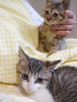 里親宅から脱走した猫を探し歩いている最中に、東京都目黒区でさびの兄妹猫と保護してきました。