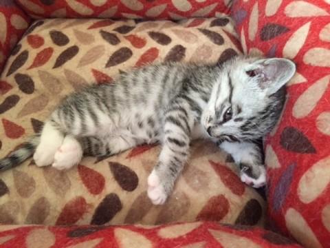 公園のトイレに段ボールに入って捨てられていたのを保護しました。
