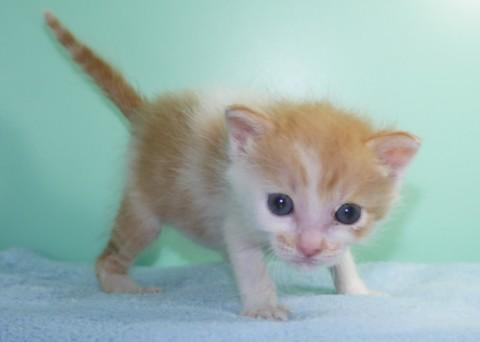そろそろ離乳期の子です。掲載時健康状態良好 哺乳瓶でミルクを飲み順調に成長しています。ノミ・耳ダニ なし、乳のみ猫にとって致死量となる採血はできません為ウイルス検査(猫エイズ・白血病)はしておりません。母猫との接触のみの乳のみ猫の感染は極めて稀です。