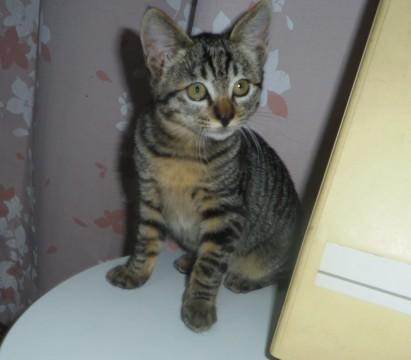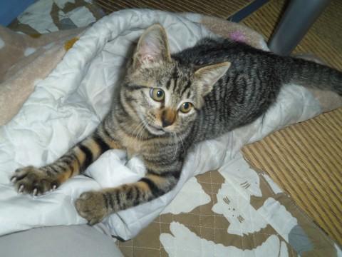保護した翌日からはすっかり甘えん坊のメチャ元気の、綺麗なキジ猫さんです。