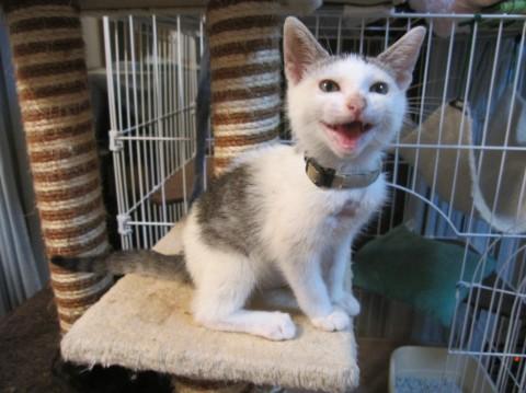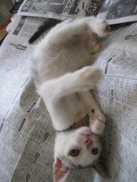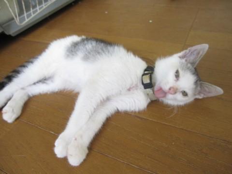 岡山市保健所より、傷病で持ち込まれたものの状態が悪く殺処分を検討している子猫がいるとの連絡を受け、とりあえずひきだしたところ四肢麻痺でした。一生おむつかと覚悟もしましたが、奇跡的な回復力で現在は他の子猫達と較べても大変元気で健康です。