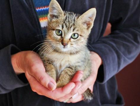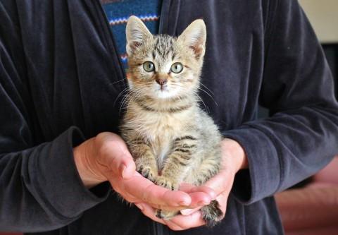 10月末、友人が玄関の植え込みの中で鳴いている子猫をみつけ保護しました。
