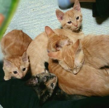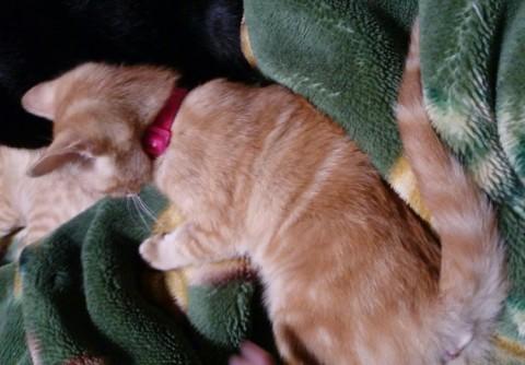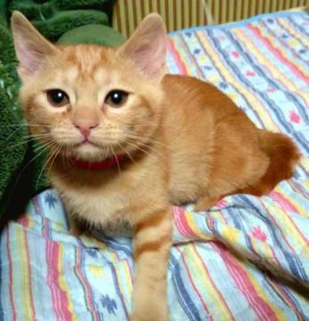 毛色は他のチャトラの子より赤系が強く、とても鮮やか。