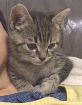 2010年10月2日 朝、自宅玄関先に生まれたばかりの猫が居りましたので私共のほうで救済、3日間獣医さんに預けて元気になったところで私共のところで育てることにしました。私共は18年間ペルシャ猫を飼っていた経験がありましたので、子猫を育てることはできます。それから2ヶ月が経ちトイレの躾やミルクやり、遊んであげることなどで過ごして参りましたが、前記の猫との同居生活の思い出・最期の別れ(死亡したこと)がとても辛いものであって、この子猫をこのまま飼って育てるのはシンドイという結論に達しました。ぜひこの可愛いトラ猫を貰ってやってください!