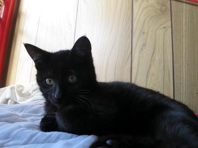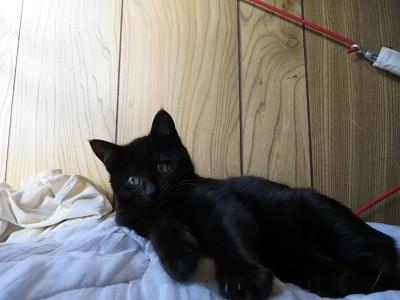 黒猫(あごとお耳とおなかに白い毛が少しあり)。