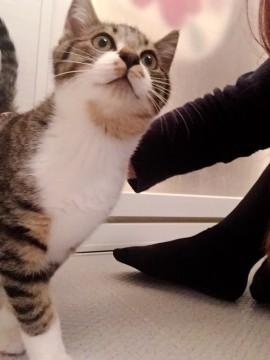 とても懐っこく、保護した当日から喉をゴロゴロ鳴らして甘えています。