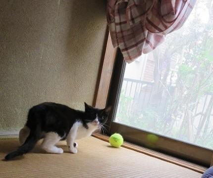 先輩格の保護猫の後をついて回ったり、ひとりで遊んだりしています。