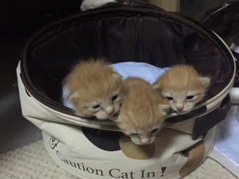 3匹の茶トラ(茶白?) の赤ちゃんの里親さま募集です