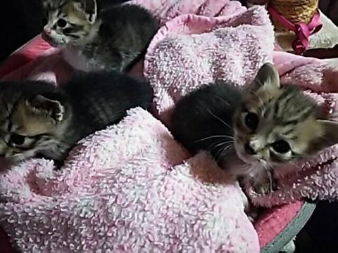 愛護管理センターに収容された生後2~3週程度の乳飲み子3兄妹です。