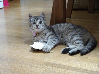 食欲も旺盛で、カルカンパウチとピュリナワン(子猫用)、シーバ(子猫用)を食べています。