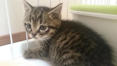 5月17日に保護しました。6兄弟のうちの1匹です。生後1ヵ月半~2カ月位かと思います。