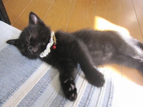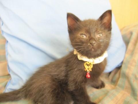 かわいい黒猫てっさい君です。大変人なつこくごろすり甘えん坊、好奇心旺盛でやんちゃです。お膝であまえたり、体を登って来てご飯を催促したりと忙しいです。