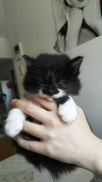 目が少し目ヤニ(涙目)気味ですが鼻はぐずぐずしていなくよくおっぱいを飲む元気な子。3匹兄弟の中では一番大きな個体です。