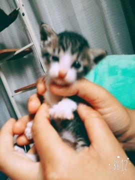 先日、駐車場に仔猫ちゃんが3匹捨てられていました。そのうちの1匹です。