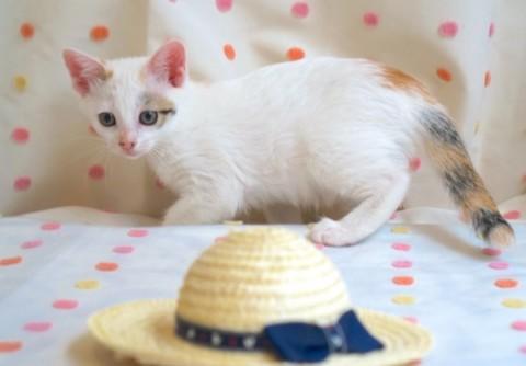 ホワイトベースのカラーに、所々に入ったカラーリングがかわいい白三毛のさつきちゃん☆