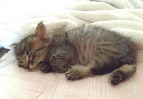 ダンボールに入って捨てられており、警察から保健所に渡り、引き出し保護しました。