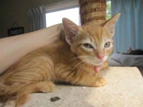 かわいい茶トラのいちまつ君。しっぽの先がかぎしっぽです。大変人なつこくごろすり甘えん坊。やんちゃで活発です。