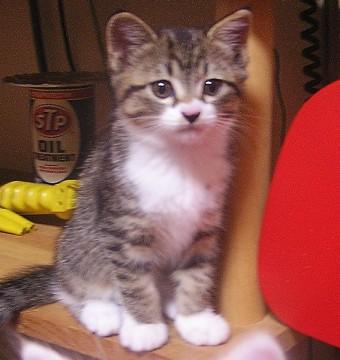 キジシロの女の子。白い胸と白いソックス。性格はおとなしめですが、よく遊びます。