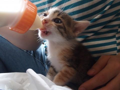 5/24前後に友人宅の庭で野良ネコが5匹の子猫を生みましたが、6/3に母猫が丸1日姿を消したため、保護しました。ミケ1号は目やにで目が開いていなかったのですが、病院に連れていき、目やにをとってもらい、処方された目薬をさしていたら綺麗になりました。
