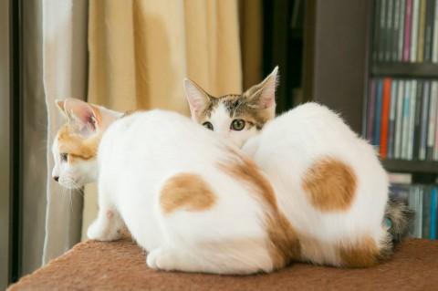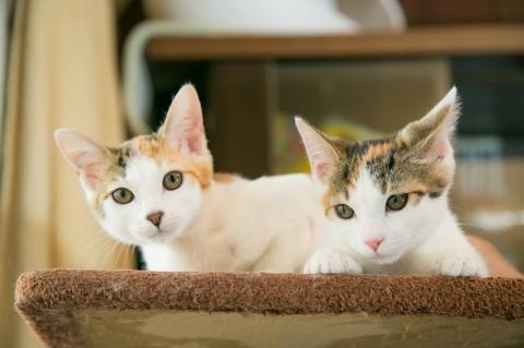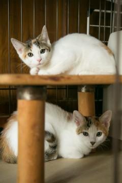 良く食べて良く遊ぶ三毛猫姉妹たち