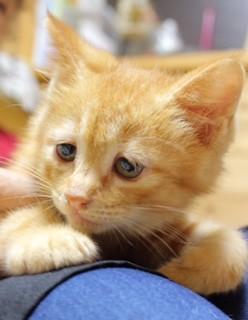 茶トラの男の子。特徴は何といってもこのトロンとしたお目々。