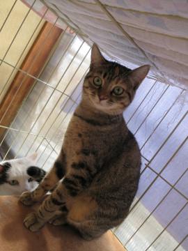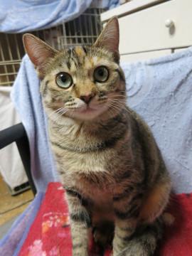 みみちゃんはキジ縞柄でおでこに茶色の星あり。