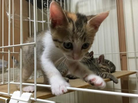 食欲は旺盛で兄弟の中ではよく食べる仔の一人です。一番離乳が進んでいるようでミルクは時々しか飲まなくなりました。