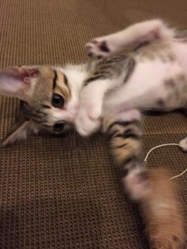 7月下旬に連れて帰ってきたので8月に保護し、家の中で育て人にも馴れました。