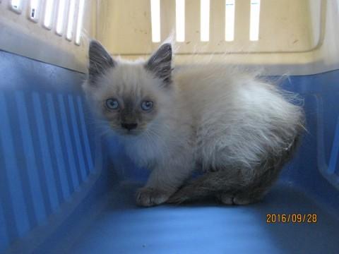 おっとりマイペースのシャム風長毛です。だいぶ人馴れし、抱くとゴロゴロいうようになりました。トイレはトレーニングせずにすぐに出来た賢い子です。