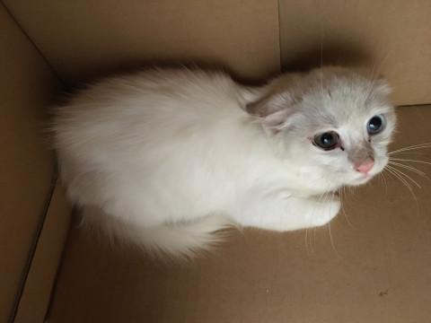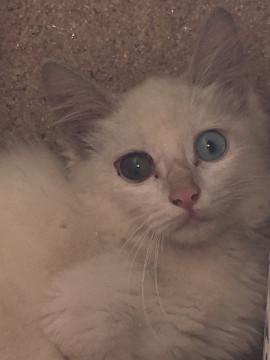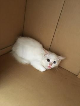 白い長毛種 オッドアイ 右目ブルーで左目茶色