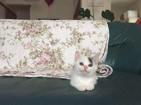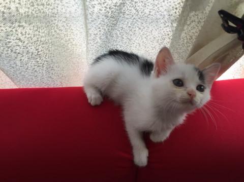 体はほぼ白でグレーっぽい黒ブチが少しありまます。
