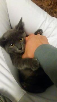 グレーのゆうちゃんは、後から保護した為にまだ人慣れしていません。子猫なので、すぐに慣れると思います。