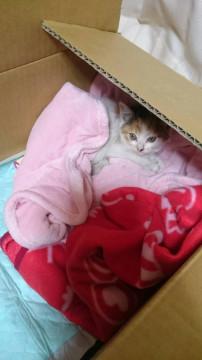 保護したばかりなのでまだ怖がっていますが、幼いのですぐに慣れてくれると思います(^_^)