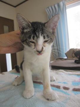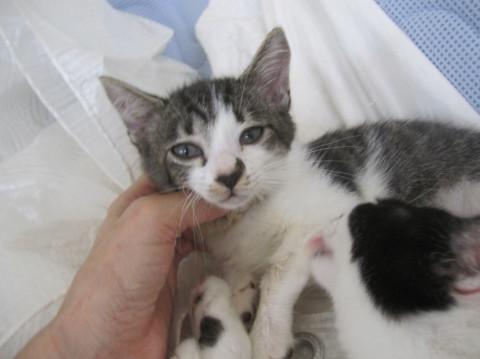 かわいいきじ白、うつぎちゃんです。大きなお目目がチャームポイント。眼が開いていない頃からミルクから育てているので大変人なつこく、何をされてもなすがまま、お膝大好きの甘えん坊になりました。乳飲み子の頃寂しかったので自分の腕をちゅうちゅう吸う癖があります。あまりに甘えん坊なので極力お留守番時間のない方にお譲りしたいです。